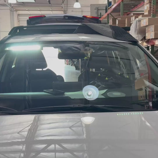 This RAV4 front visor kit is designed to mount two Whelen Mega T's behind the windshield using the OEM driver and passenger sun visor headliner clips.